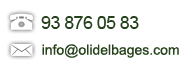 Carmen Vendrell Ollé  |  NIF.: 77.269.490-R  |  Aptdo. Correos 80  |  08272  |  Sant Fruitos del Bages (Barcelona)  |  info@olidelbages.com  |  Tel.: 938 760 583